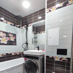 Стоимость ремонта ванной комнаты под ключ зависит от площади, выбранного дизайна, качества материалов и сложности работ. В среднем, капитальный ремонт ванной комнаты площадью 4–6 м² обойдётся от 80 000 до 250 000 рублей. В цену входит демонтаж старого покрытия, замена сантехники, укладка плитки, электромонтаж, сантехнические работы и отделка. У нас — прозрачное ценообразование без скрытых платежей. Рассчитайте точную стоимость по фото или выезду замерщика.